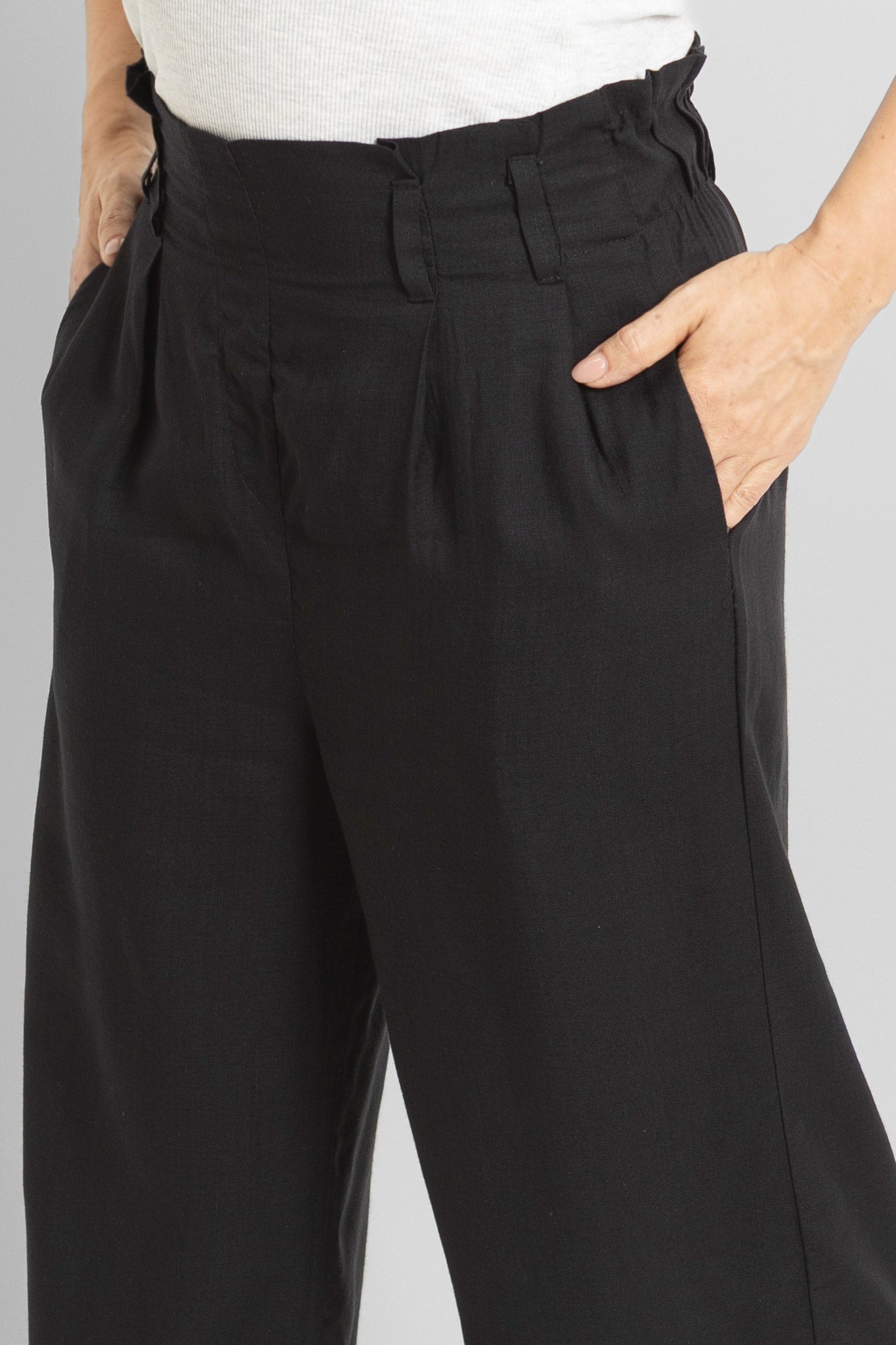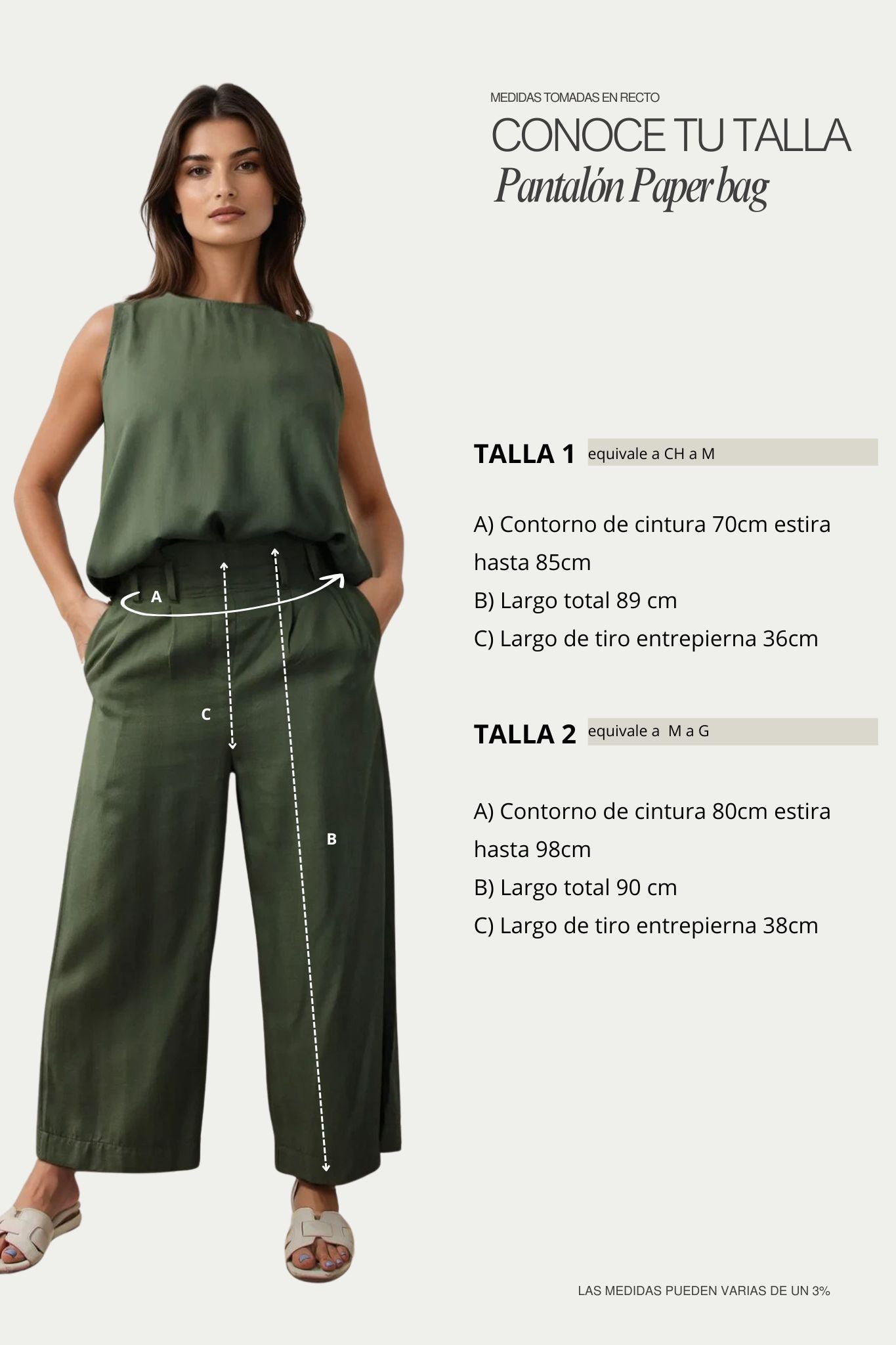 Descubre la fusión perfecta de estilo, comodidad y sostenibilidad con nuestro pantalón estilo paper bag. Este moderno modelo de corte tipo Capri presenta un diseño que abraza tu cintura gracias a su ajuste compresor y elástico en la parte trasera, resaltando tu figura de manera elegante.